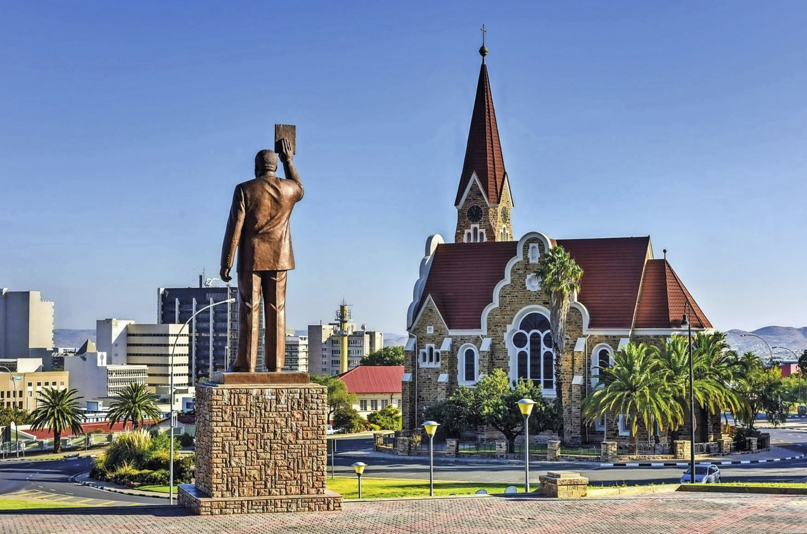 2. Reisetag: Morgens Ankunft in Windhoek und Stadtbesichtigung - Weiterfahrt nach Mariental - 2 Übernachtungen am Rand der Kalahari-Wüste